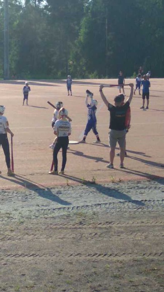 Helteisenä maanantai-iltana 27.6. matkasimme pelaamaan pesäpalloa Varkauteen perinteikkäälle Kämärin pesäpallostadionille.