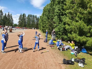 F-junioreiden päivän ohjelma oli tiivis. Luvassa olivat kohtaamiset Jyväskylän Kiriä, Puijon Pesistä ja Siilinjärven Pesistä vastaan. Ottelut olivat joukkueelle ensimmäiset oikeat 9 vastaan 9 pesäpallopelit ja pelaajien jännitys oli käsinkosketeltavissa. Lauantain pelit menivätkin pääasiassa pelikokemusta hankkiessa, mutta juoksujenkin makuun päästiin. Illalla lapset tuumasivatkin, että eihän me keretty tänään muuta tekemään kuin pelaamaan ja syömään. Näinhän se olikin, ja hauska pesäpallopäivä joukkueena vietettiin.