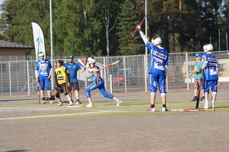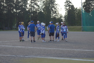 Vasaman D-joukkue kohtasi maanantaina 26.6 Suonenjoella täpötäyden pesäpallostadionin edessä Sotkamon Jymyn ja Puijon Pesiksen.