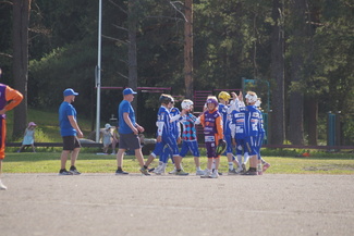 Vasaman D-joukkue kohtasi maanantaina 26.6 Suonenjoella täpötäyden pesäpallostadionin edessä Sotkamon Jymyn ja Puijon Pesiksen.